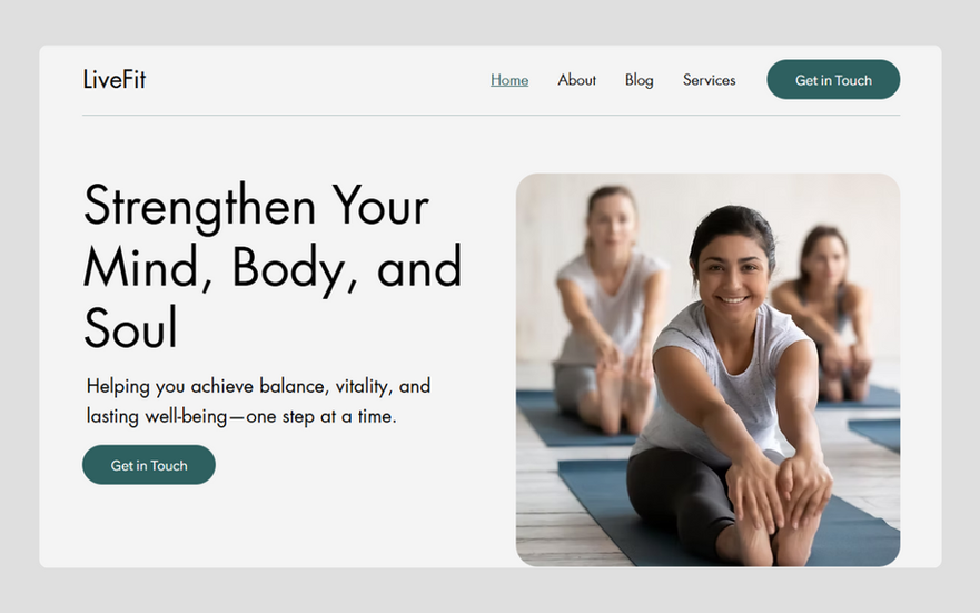 LiveFit is a serene, responsive wellness template showcasing classes, programs, and instructors while enabling bookings and client engagement.